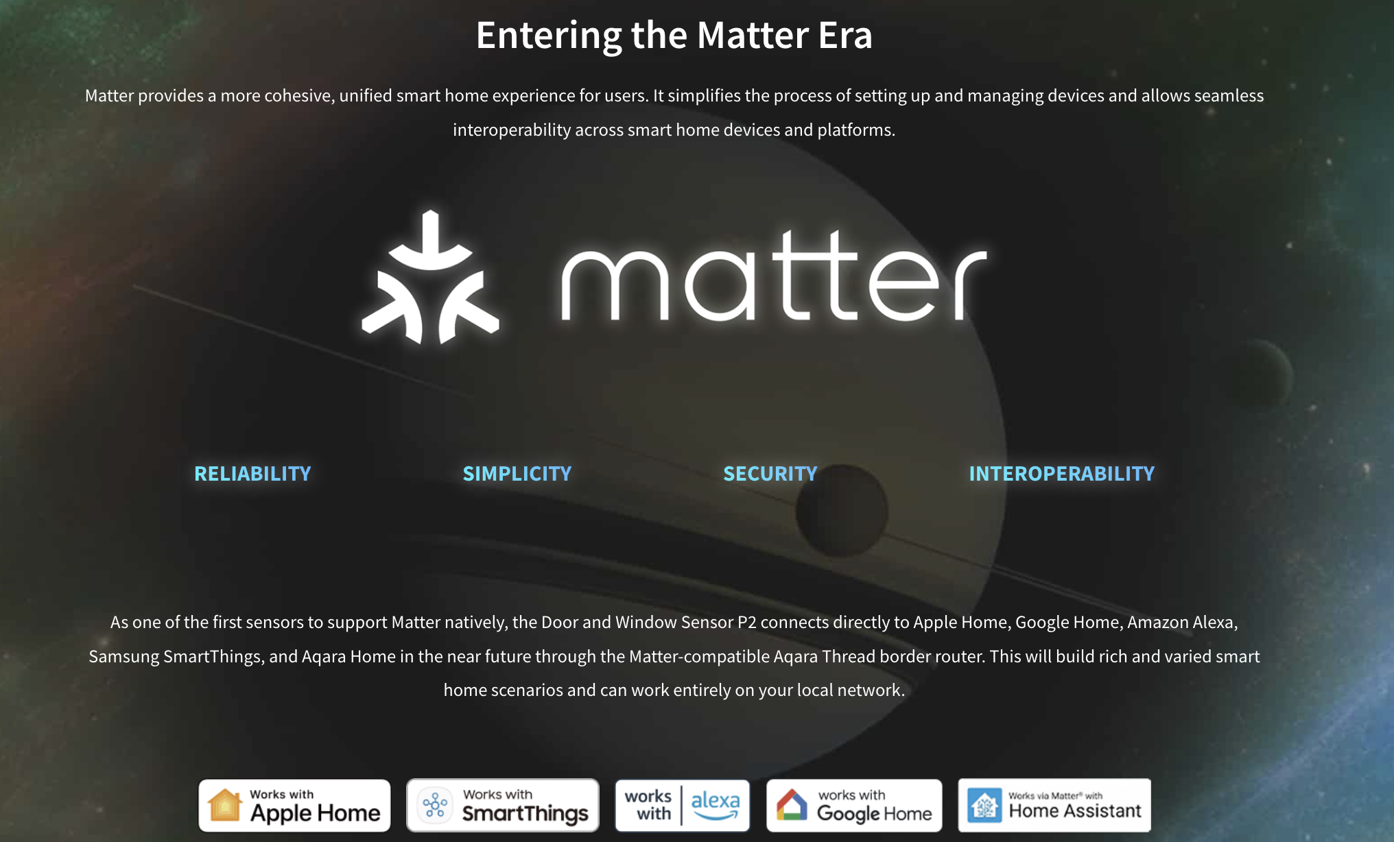 ✅[Native Matter Support over Thread] As one of the first sensors to support Matter, the P2 supports access to Apple Home, Google Home, Amazon Alexa and Samsung SmartThings. (*NOTE: The P2 currently DOESN’T SUPPORT the Aqara Home app but will support it and add more features in the future through the Matter-compatible Aqara border router.) Meanwhile, as a sensor based on the Thread protocol, the P2 provides enhanced connectivity, low-power consumption, more stability and low latency.