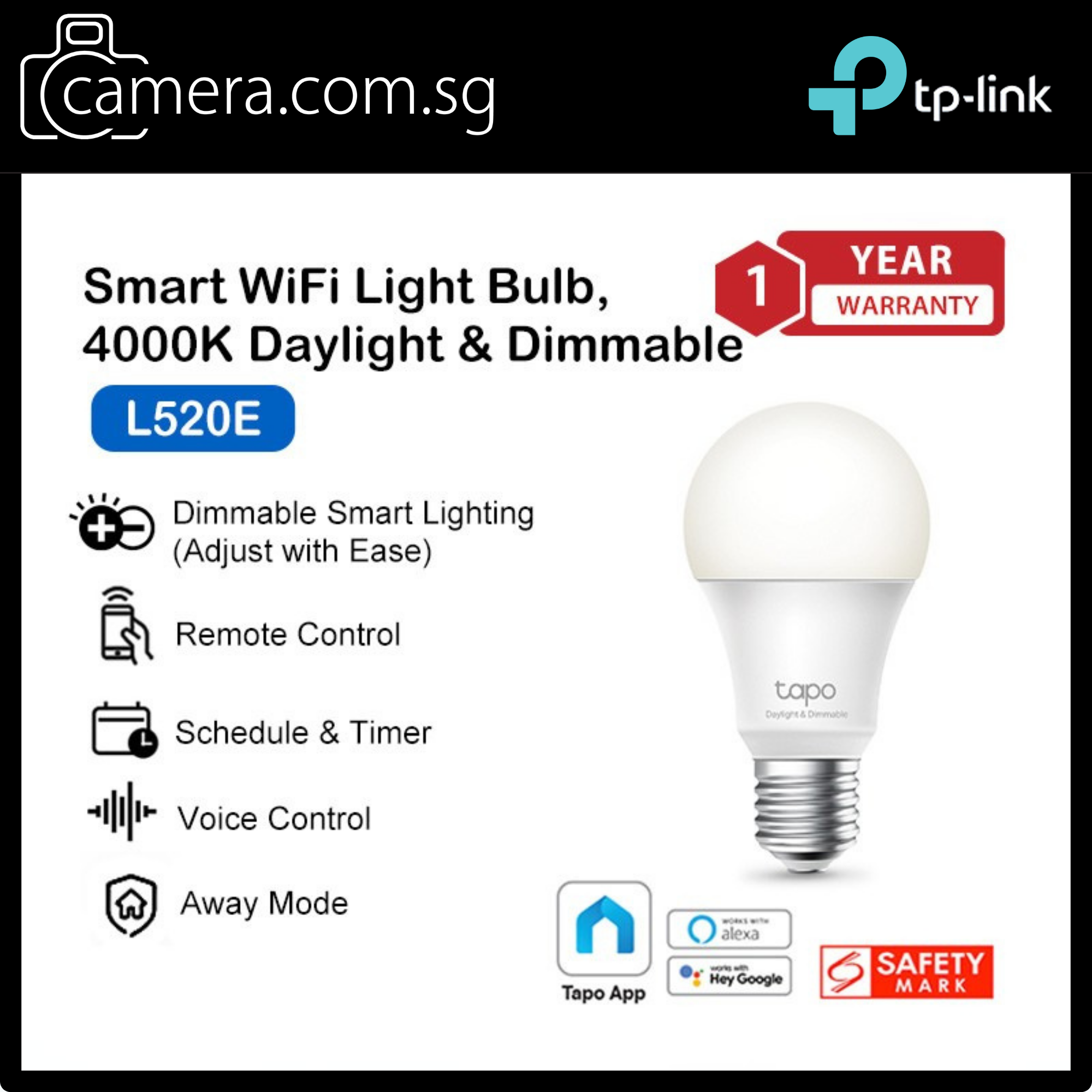 Voice Control – Manage the lights with your voice commands as Tapo works with Amazon Alexa and Google Assistant.